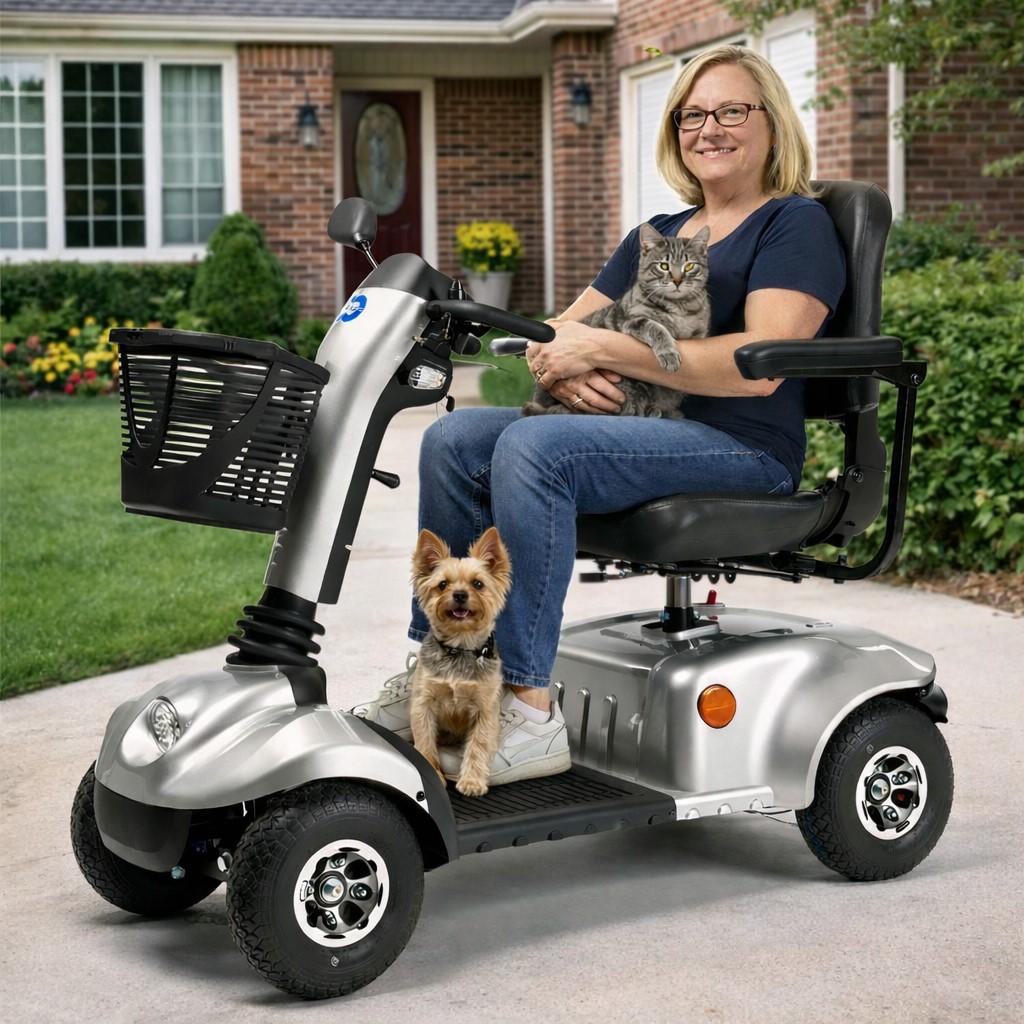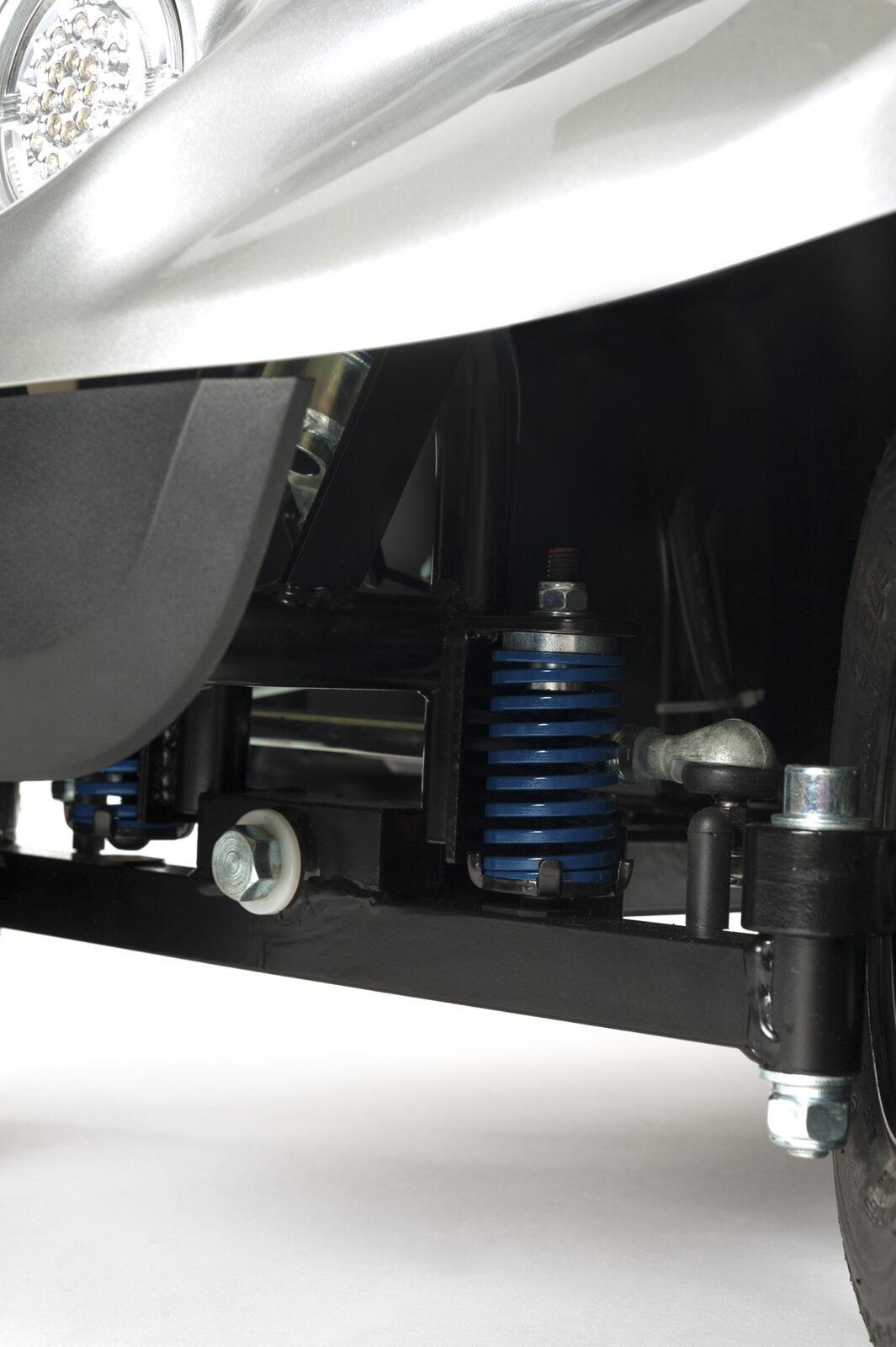 Bo łączy szybkość, komfort i bezpieczeństwo. Zasięg do 35 km, prędkość 6/10 km/h i pełne zawieszenie sprawiają, że idealnie nadaje się na dłuższe trasy. Obrotowy fotel, regulowana kierownica i oświetlenie LED zapewniają wygodę i pewność w każdej sytuacji.