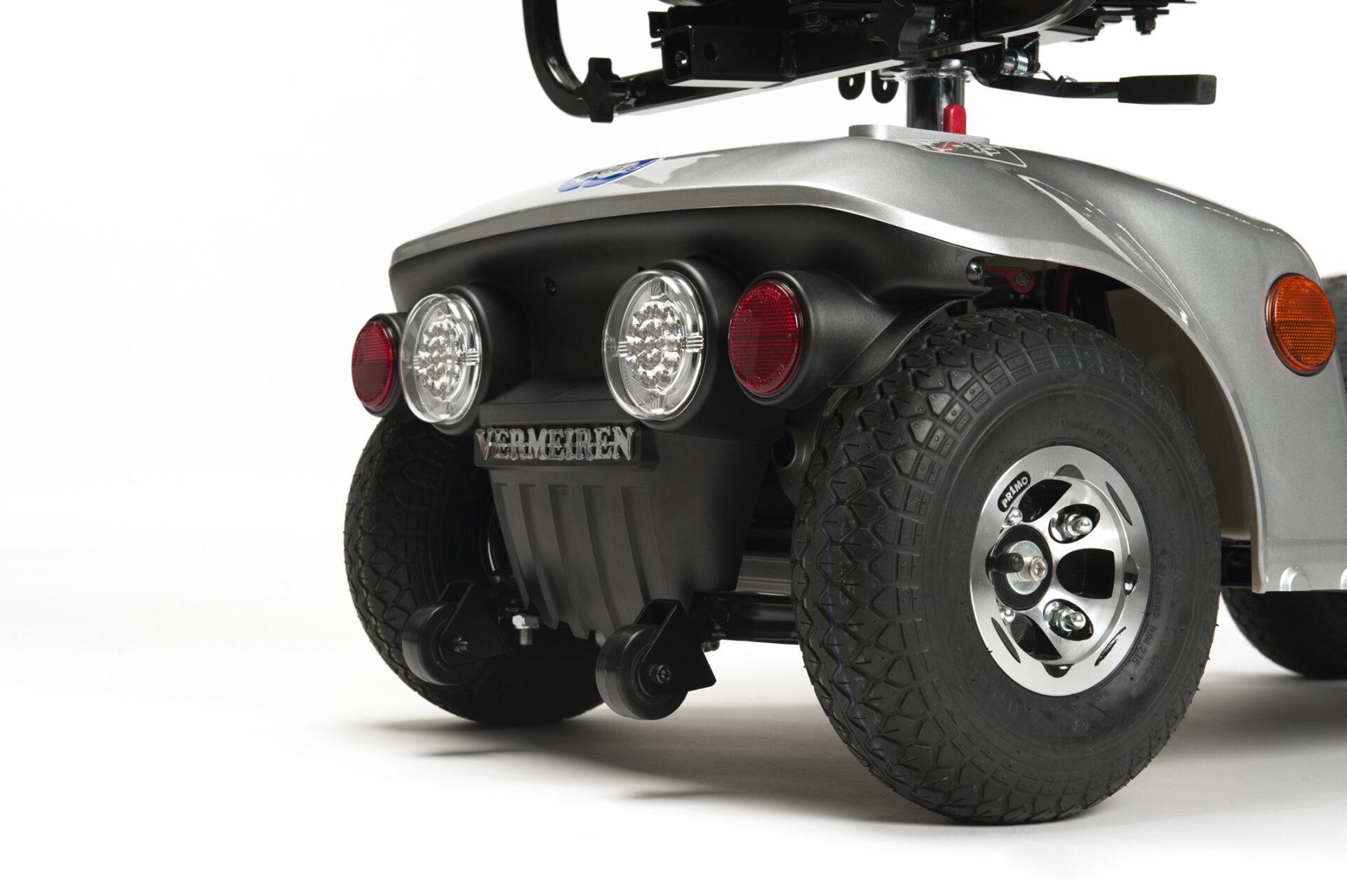 4‑kołowa, stabilna konstrukcja ze wspomaganiem anty-wywrotowym — idealna na chodniki, podjazdy i nierówne powierzchnie