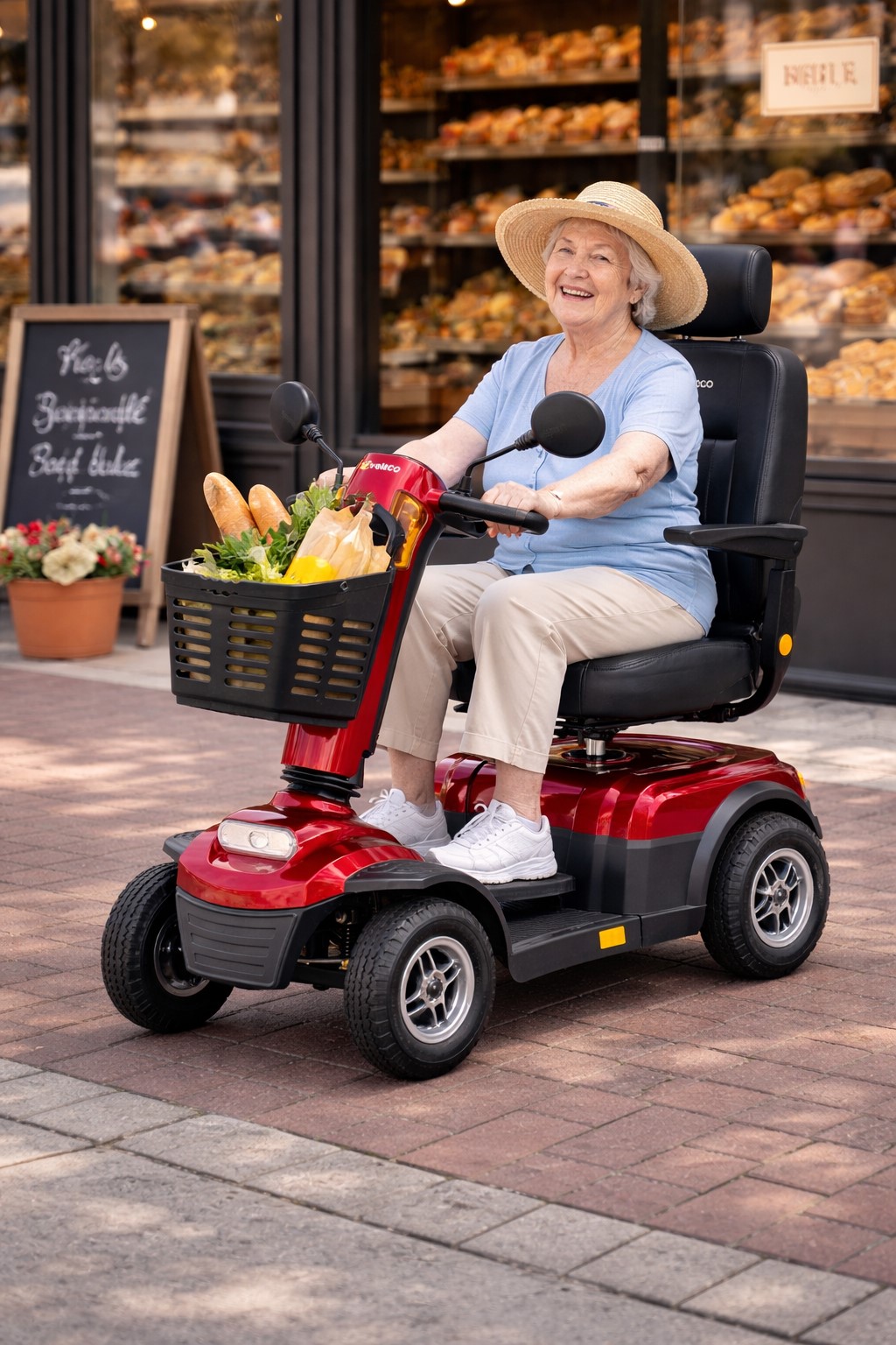 Terenowy skuter inwalidzki z prędkością do 12 km/h pozwala na łatwe i szybkie przemieszczanie się czy to po zakupy, do koleżanki na kawę czy też do przychodni. Jazda nim to sama przyjemność.