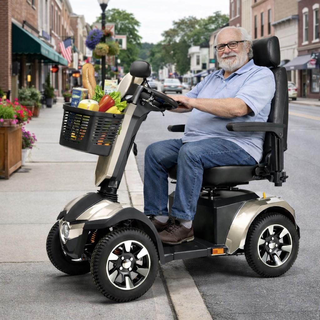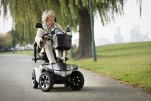 Skuter inwalidzki elektryczny MERCURIUS 4D to skuter z niezależnym zawieszeniem na 4 koła – świetny kompan w podróży w każdym terenie!
