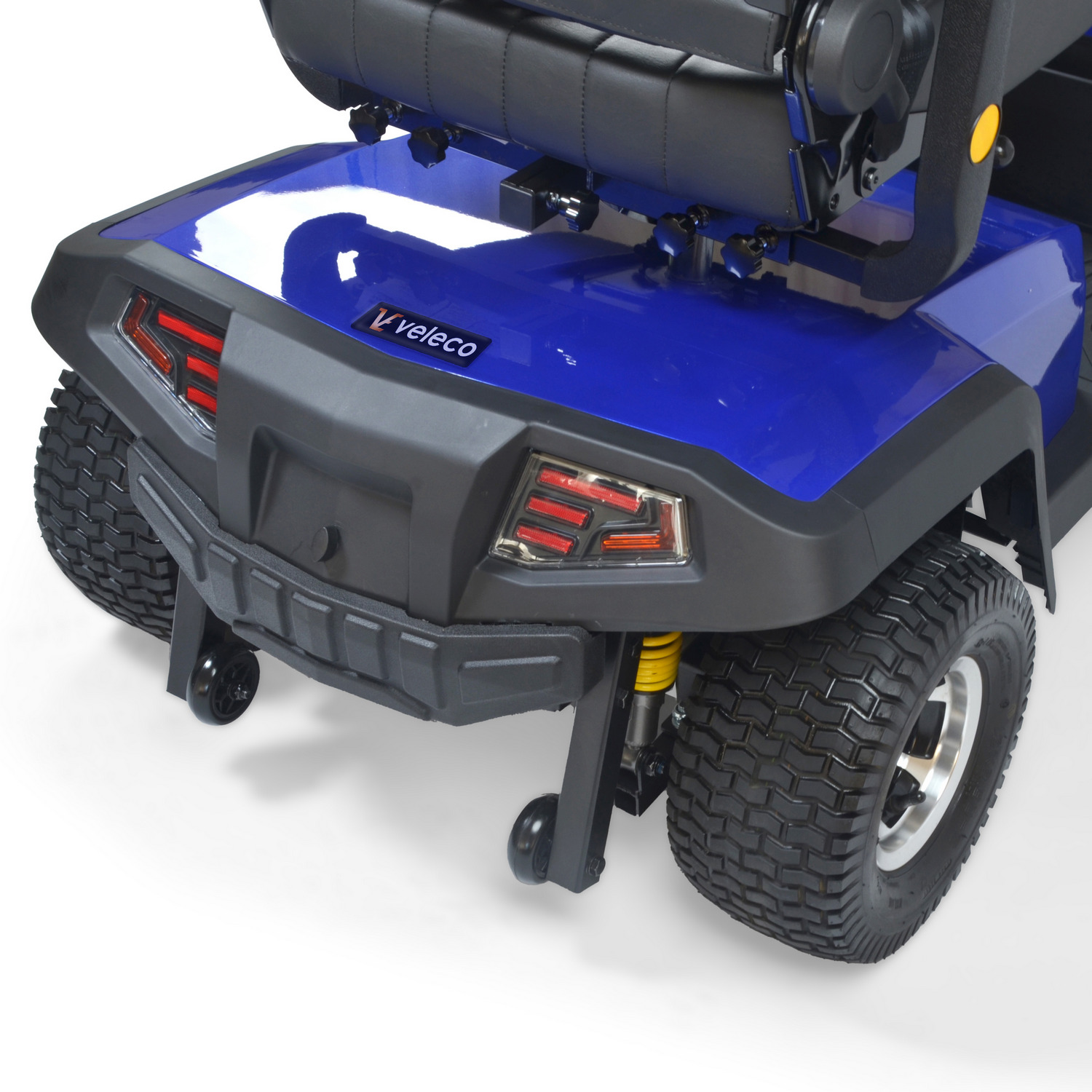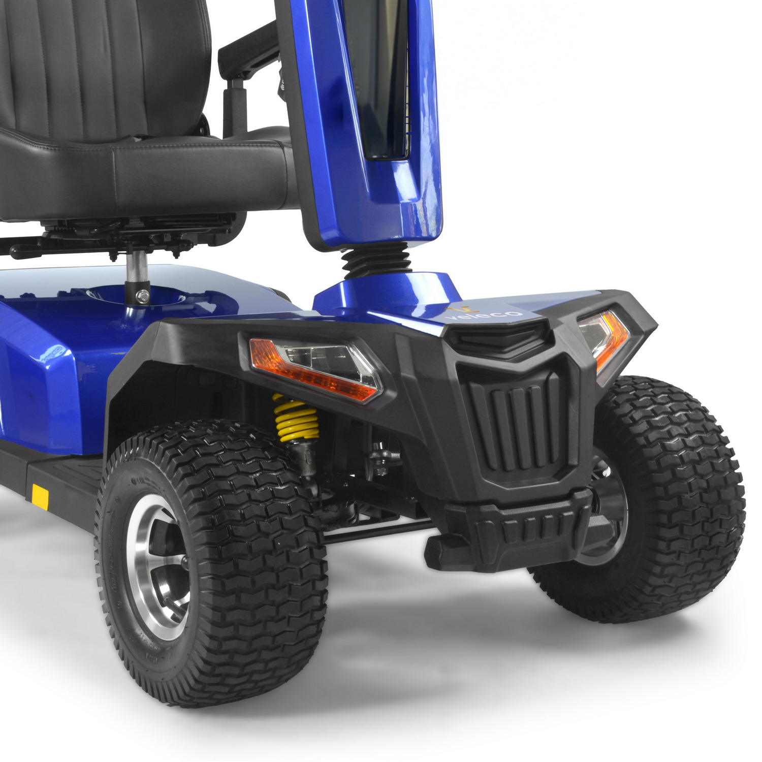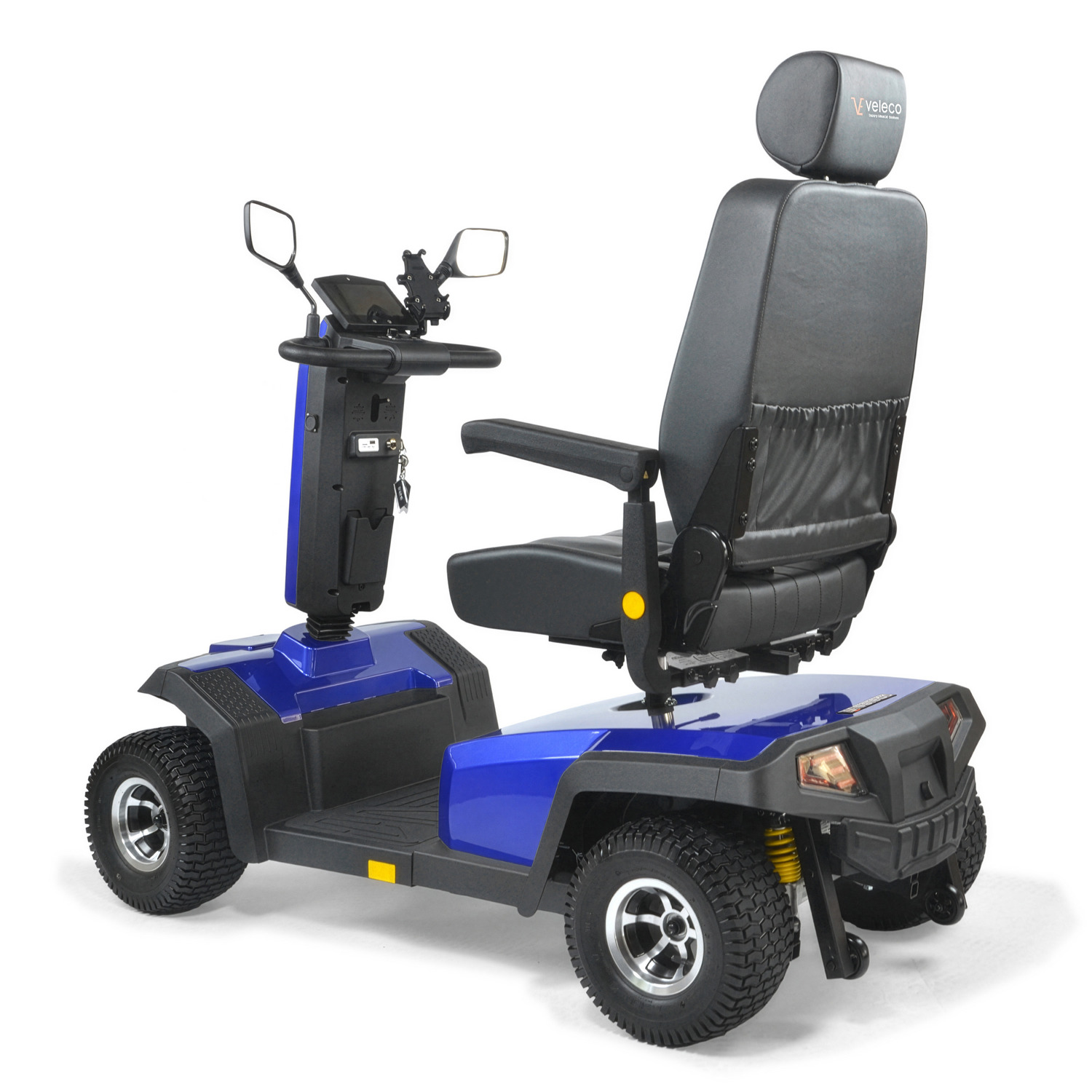 Komfort zapewniają m.in. obrotowe siedzenie, regulowane podłokietniki, ergonomiczna kierownica oraz pełne zawieszenie amortyzujące wstrząsy.